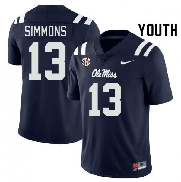Austin Simmons Ole Miss Official College Football #13 Youth Jersey - Navy
