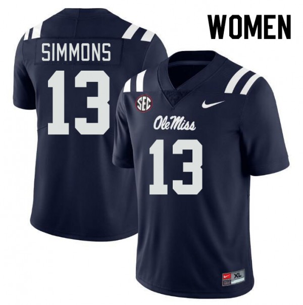 Austin Simmons University of Mississippi Game #13 Womens College Football Jersey - Navy