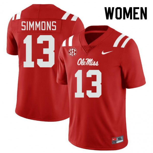 • Austin Simmons University of Mississippi Women #13 College Football Embroidery Jerseys - Red