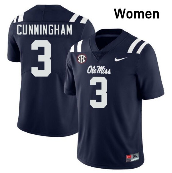 Caleb Cunningham Ole Miss 2025 College Football #3 Womens Jerseys - Navy