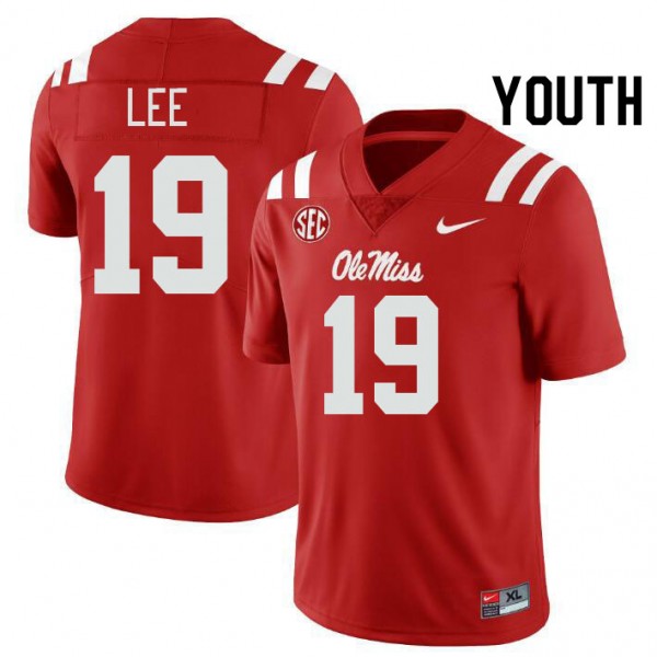 Cayden Lee Rebels College Football Youth Replica #19 Jersey - Red