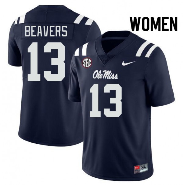 Cedrick Beavers Ole Miss #13 College Football High School Women Jersey - Navy
