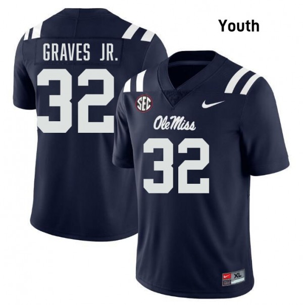 Chris Graves Jr. University of Mississippi #32 Youth College Football NCAA Jersey - Navy