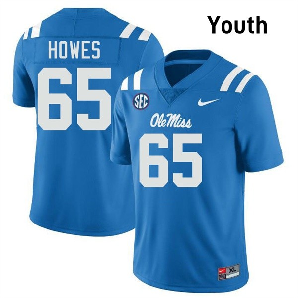 • Connor Howes Ole Miss Rebels Youth #65 College Football University Jersey - Powder Blue