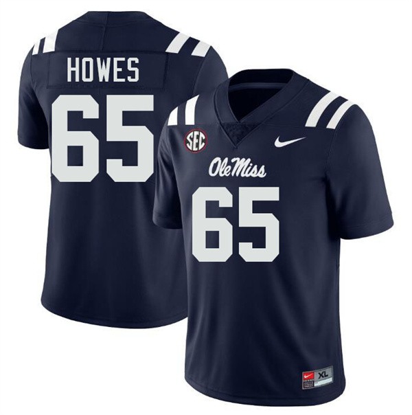 • Connor Howes Ole Mississippi 2025 #65 Men College Football Jerseys - Navy
