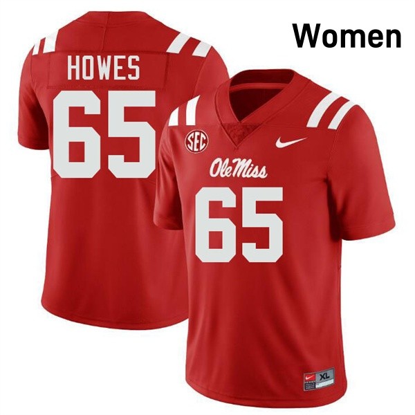 Connor Howes Rebels Women College Football #65 High School Jersey - Red