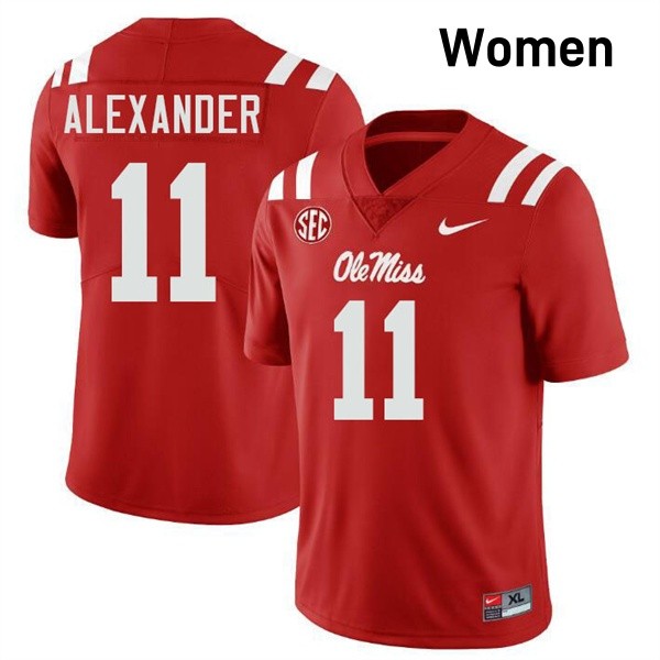 Deuce Alexander Ole Miss Embroidery #11 College Football Women Jersey - Red