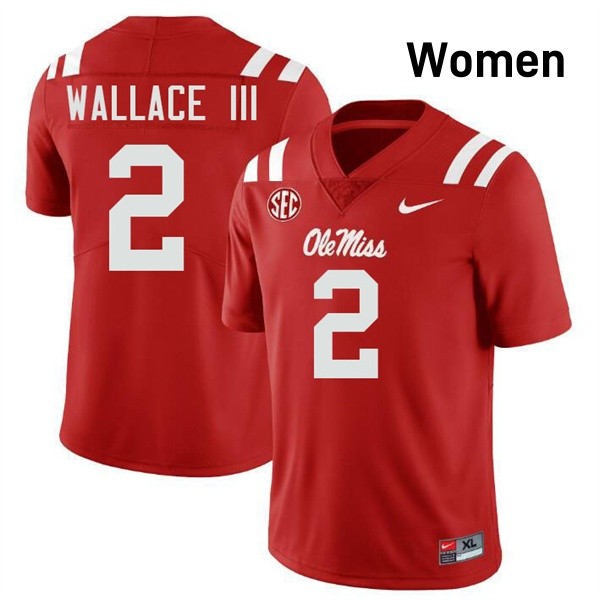 Harrison Wallace III Rebels College Football #2 Player Womens Jerseys - Red