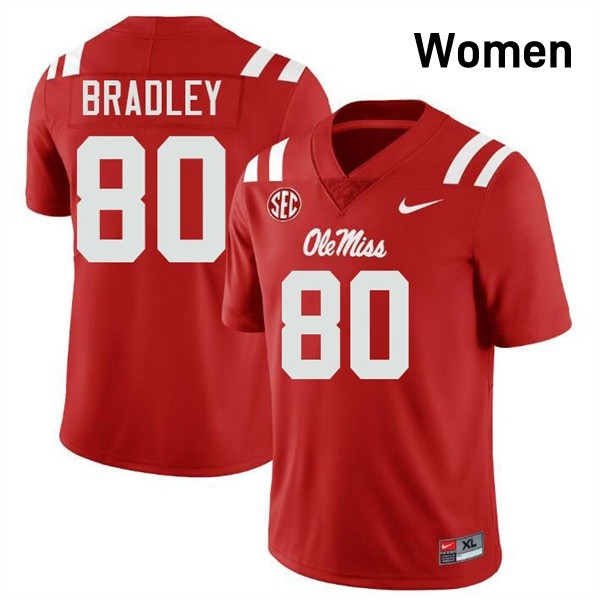 Hayden Bradley Ole Miss Rebels #80 College Football Women Replica Jerseys - Red