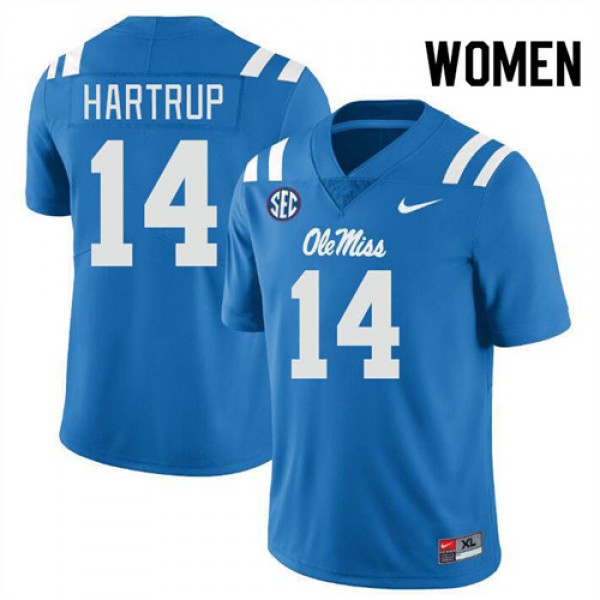 • Izaiah Hartrup Ole Mississippi 2025 College Football Women's #14 Jersey - Powder Blue