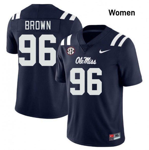 Jamarious Brown Rebels College Football #96 Womens High School Jerseys - Navy