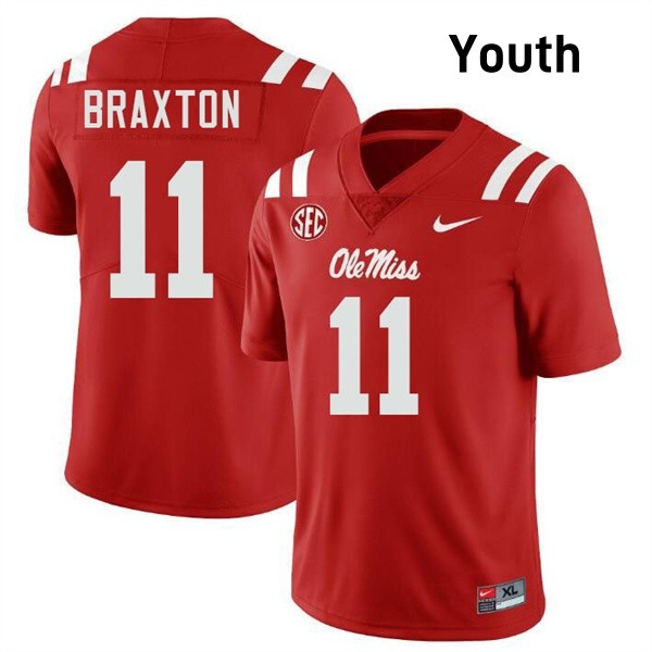 Jaylon Braxton University of Mississippi Limited #11 Youth College Football Jerseys - Red