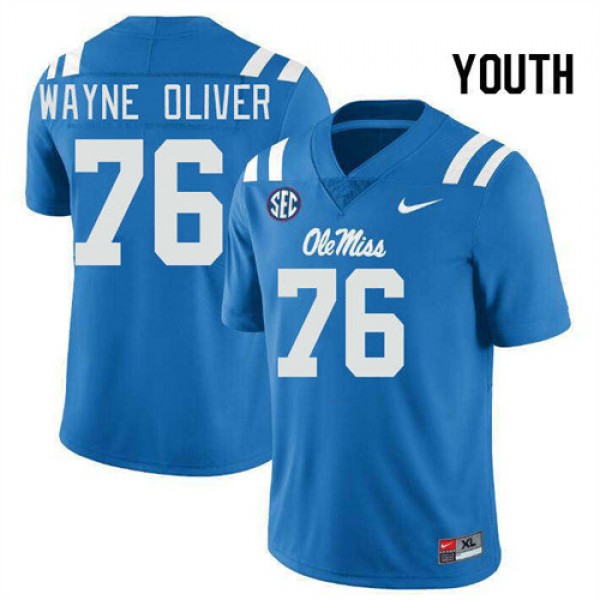 • John Wayne Oliver Ole Miss Player #76 College Football Youth Jerseys - Powder Blue