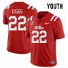• Logan Diggs University of Mississippi College Football Player #22 Youth Jerseys - Red