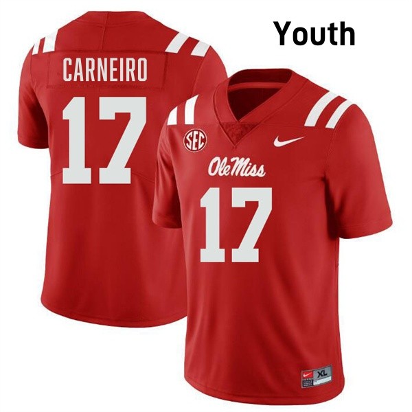 Lucas Carneiro Ole Miss Youth College Football Official #17 Jersey - Red