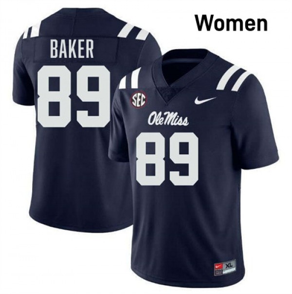 • Mike Baker Mississippi #89 College Football NCAA Women's Jerseys - Navy