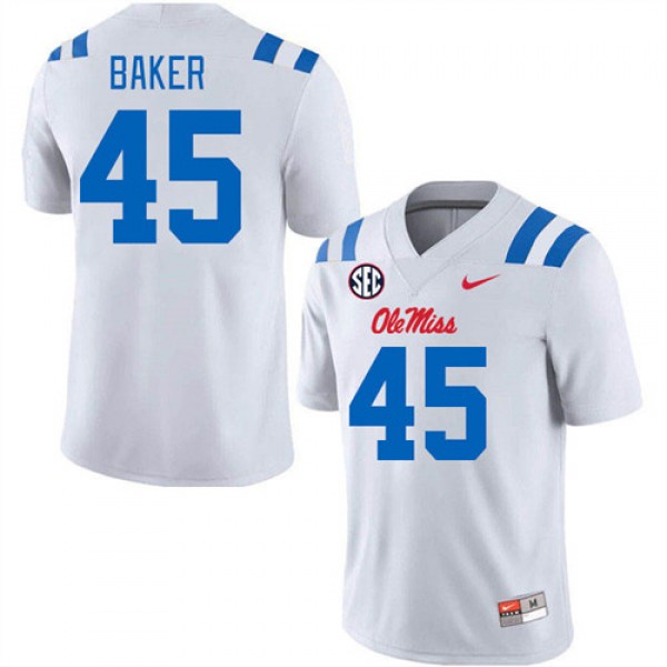 • Mike Baker Ole Miss #45 College Football Men Game Jerseys - White