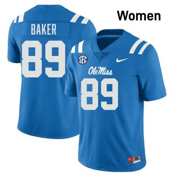 • Mike Baker Rebels College Football #89 NCAA Women Jersey - Powder Blue