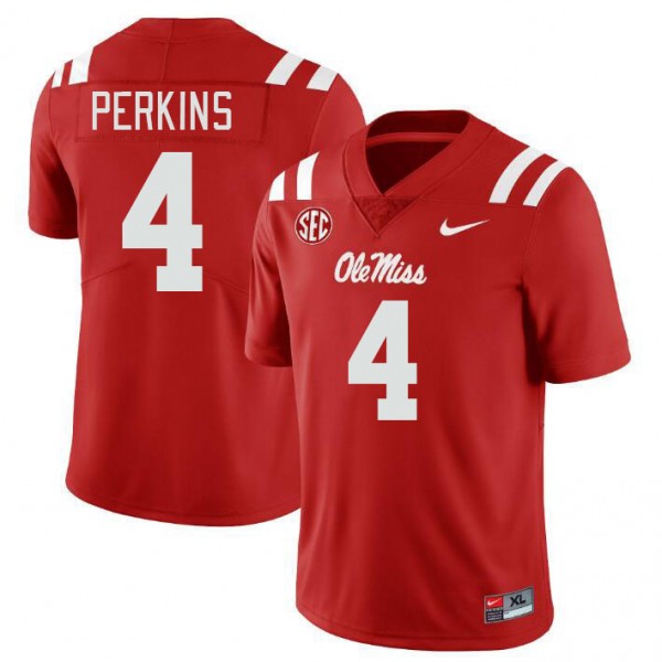 • Suntarine Perkins Ole Miss Rebels Mens #4 College Football High School Jerseys - Red