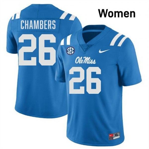 • Tahj Chambers University of Mississippi #15 Embroidery Women's College Football Jerseys - Powder Blue