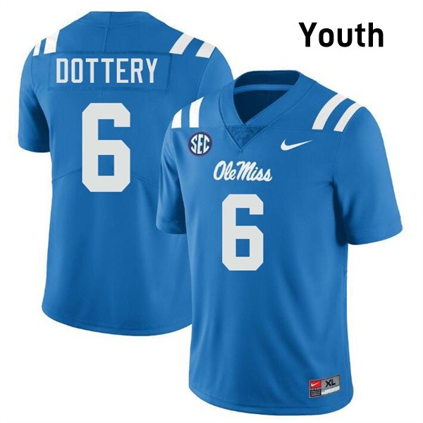 TJ Dottery Mississippi #6 High School Youth College Football Jerseys - Powder Blue