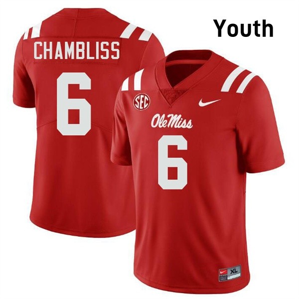 • Trinidad Chambliss Ole Miss #6 Youth Replica College Football Jerseys - Red