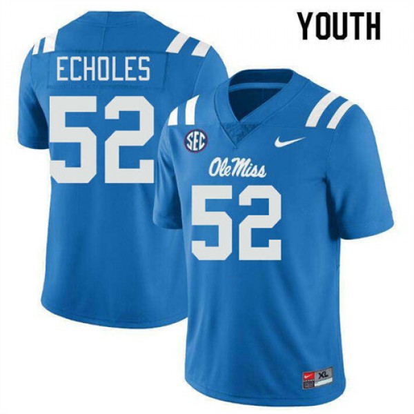 • Will Echoles Ole Miss Rebels Youth College Football University #52 Jersey - Powder Blue